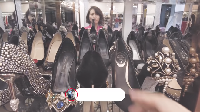"Tôi mạn phép đứng tại khu giày trong nhà Ngọc Trinh để tham quan nó. Nhà Ngọc Trinh phải phân thành từng khu một vì mỗi khu để rất nhiều đồ riêng biệt.