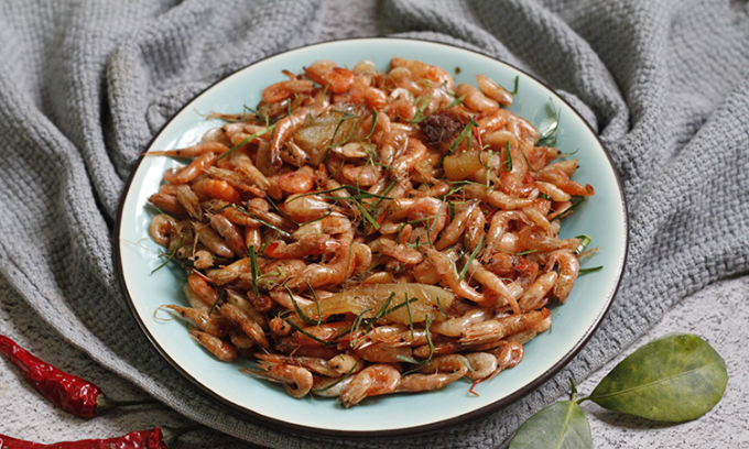 Tôm khô săn, vỏ giòn óng đẹp, màu đỏ au, dậy mùi thơm của lá chanh, vị mặn ngọt hài hòa là món ăn gắn liền với tuổi thơ của nhiều người.