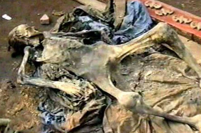 Khi nắp quan tài vừa được cạy mở, cảnh tượng trước mắt hai chàng trai trẻ có lẽ cả đời hạ không quên: "Thi thể trong quan tài nằm trong tư thế vô cùng thê thảm, miệng há to, chân tay giãy giụa, quần áo xộc xệch dường như cái chết của người này không hề thanh thản". Hai thanh niên kinh hãi chạy ra khỏi lăng và đi báo cáo sự việc với chính quyền địa phương.