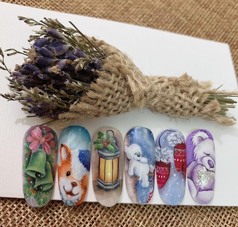 Với những ai thích sự trẻ trung thì các hình vẽ hoạt hình bằng gel rất dễ thương nhí nhảnh này là một lựa chọn không tồi. Trên một bàn tay chúng ta có thể vẽ lên đó 1 đến 2 hình và phối màu hình đó theo tone chủ đạo của các móng khác.