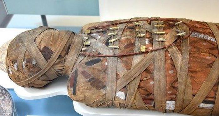Sau khi hoàn tất các bước, thợ ướp xác sẽ dùng vải lanh quấn nhiều lớp quanh xác ướp trước khi đặt vào bên trong quan tài.