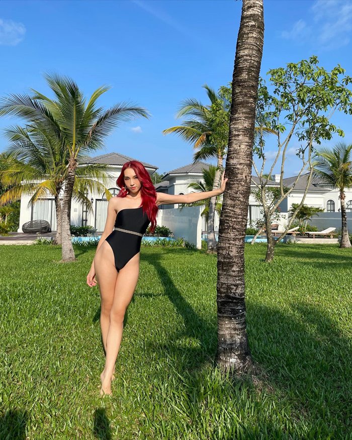 Thân hình chuẩn đẹp đồng hồ cát của Emily khi mặc áo tắm.