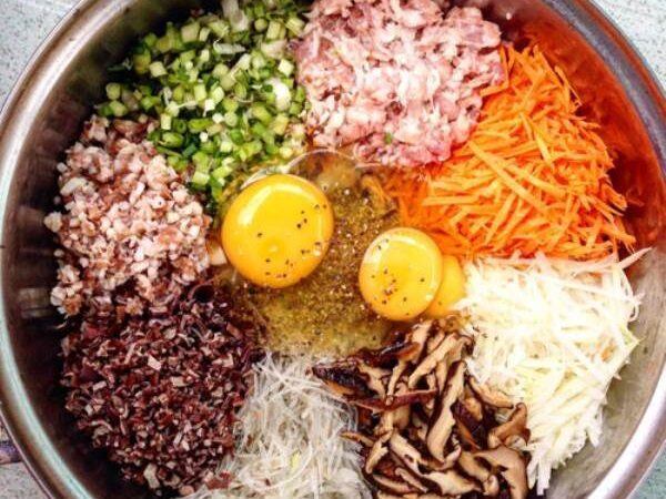 – Trước tiên với nấm đông cô, bạn rửa sạch rồi thái nhuyễn. Với mộc nhĩ, bạn ngâm nước ấm cho nở ra trong khoảng 30 phút, sau đó cũng băm nhỏ hoặc thái sợi mỏng dài. Với cà rốt, bạn gọt vỏ, rửa sạch rồi thái sợi mỏng.