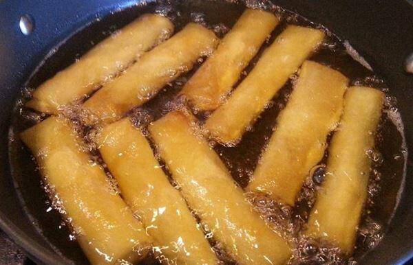 – Mẹo: bạn có thể giúp cho chả giò thơm hơn bằng cách vắt thêm vài giọt chanh vào chảo.