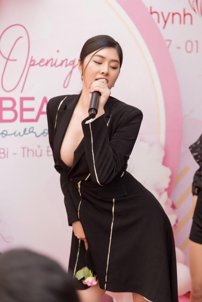 Trong thời trang, style áo vest được các nhà mốt sáng tạo và ứng dụng lồng ghép vào nhiều thiết kế khác nhau. Chính vì thế, Huỳnh Tiên luôn biết cách làm mới hình ảnh bản thân từ style này. Chiếc váy cô mặc có phần cổ như áo blazer, khoe nội y nửa kín nửa hở tăng thêm sức hút.
