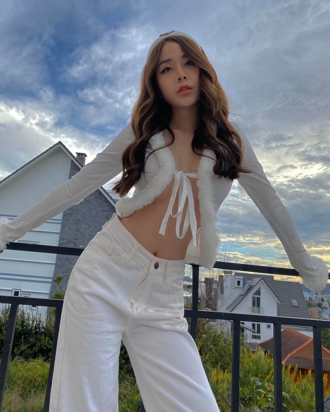 Những bộ trang phục như nội y, áo tắm, đồ ôm thường xuyên được Lục Anh chọn mặc.