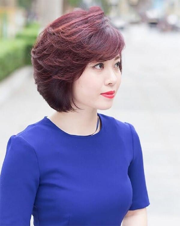 Bước vào tuổi trung niên, khuôn mặt bạn có xu hướng trở nên sắc nét và góc cạnh hơn, vì vậy hãy chọn kiểu tóc ngắn uốn cụp phù hợp. Những lọn tóc được uốn cụp nhẹ nhàng giúp che đi khuyết điểm một cách khéo léo. Kết hợp màu nhuộm sáng để hack tuổi hiệu quả và có vẻ ngoài thêm sang trọng hơn.