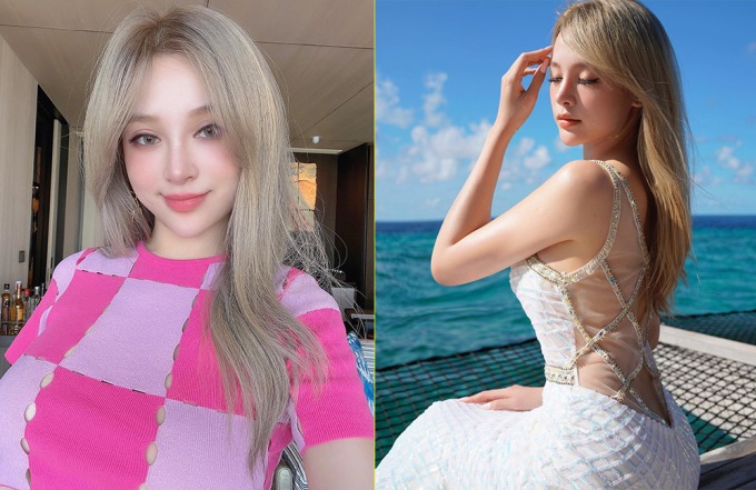 Nhuộm tóc từ tone nâu sang màu xám khói cho chuyến du lịch Maldives, song đến ngày thứ ba, Huyền Baby đã thấy tóc chuyển dần sang màu vàng.
