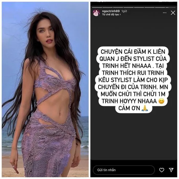 Sau đó, chính Ngọc Trinh cũng thừa nhận bản thân đã "mượn ý tưởng" thiết kế Kendall Jenner từng diện. Theo đó, "Nữ hoàng nội y" giải thích trên Story: "Chuyện cái đầm không liên quan gì đến stylist của Trinh hết, tại Trinh thích rồi Trinh kêu stylist làm cho kịp chuyến đi của Trinh".