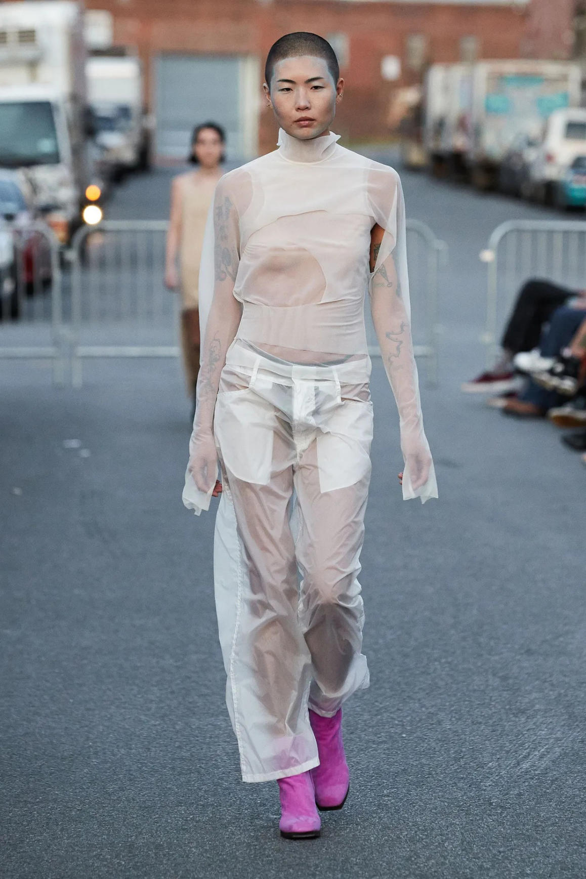 Theo Vogue, áo xuyên thấu là một trong những xu hướng nổi bật của mùa hè này. Chất liệu sheer, tulle, organza, chiffon... mỏng manh, trong suốt được nhiều nhà mốt khai thác triệt để trên phom dáng đa dạng như sơ mi, áo cổ lọ, áo khoét nách, crop top...