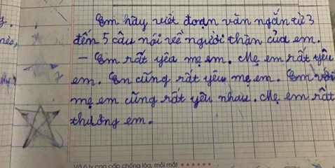 5 câu nói về người thân là 5 câu bày tỏ tình yêu thương với mẹ của em học sinh khiến dân mạng không khỏi thích thú.