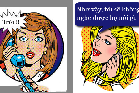 Hai cô bạn gọi điện thoại cho nhau, một người than thở vì không thể nghe được hàng xóm nói gì.