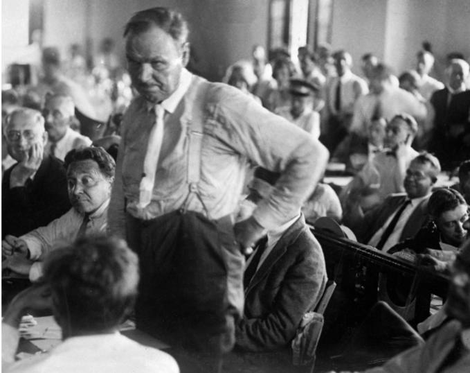 Luật sư Clarence Darrow trong phần thủ tục tại tòa án Tennessee, tháng 7/1925. Ảnh: NY Daily News
