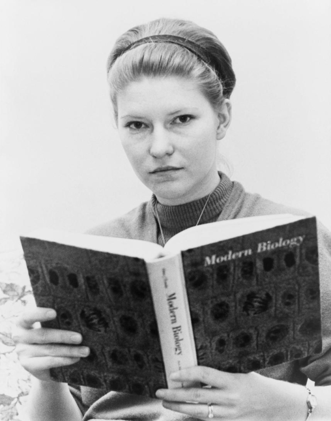 Cô Susan Epperson cầm trong tay cuốn sách giáo khoa Sinh học hiện đại giảng dạy về Thuyết tiến hóa. Ảnh: Arkansas online