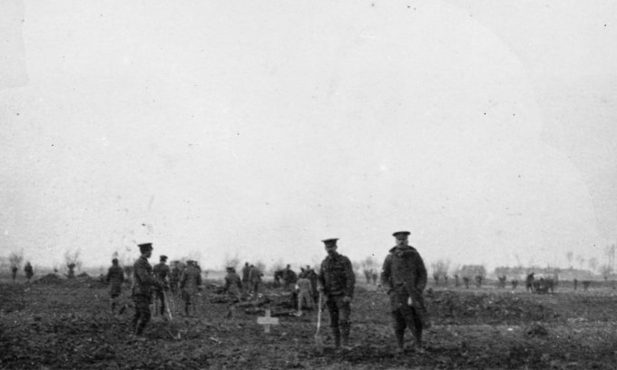 Binh sĩ hai phe chôn cất những người tử trận trong những cuộc tấn công trước ngày 25/12/1914. Ảnh: IWM.