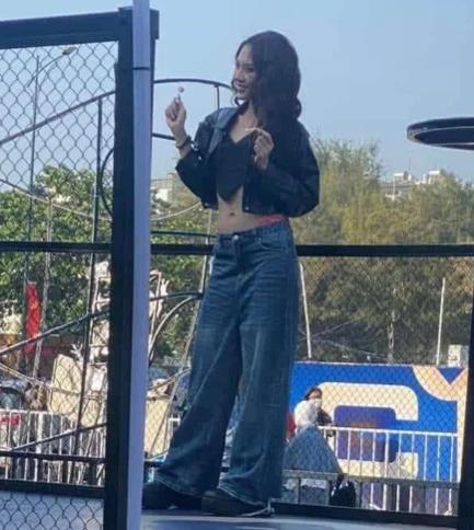 Dân mạng đang bàn tán sôi nổi về hình ảnh chụp Hoa hậu Mai Phương tại một sự kiện. Miss World Vietnam 2022 diện trang phục quần jeans - áo croptop năng động, cá tính, để lộ vùng eo.