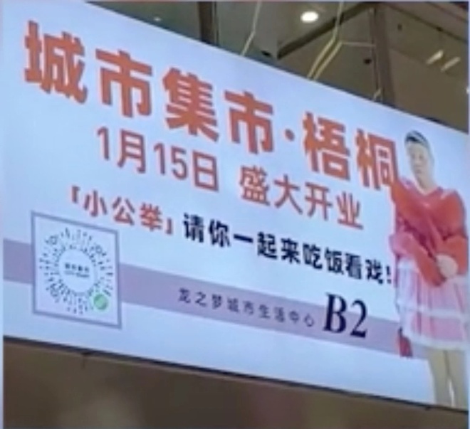 Tuần này, người phụ nữ lại thu hút sự chú ý lần nữa sau khi trở thành đại sứ thương hiệu của một trung tâm thương mại mới khai trương ở quận Trường Ninh (Thượng Hải). Hình ảnh của bà xuất hiện trên những tấm quảng cáo lớn tại nơi này, The Paper đưa tin.