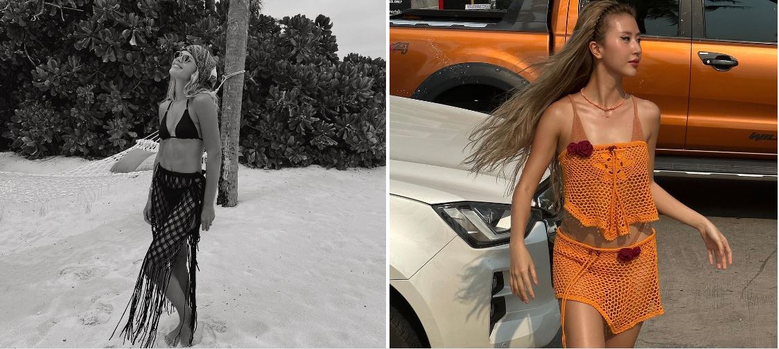 Các tín đồ thời trang đồng loạt lăng xê váy áo móc đan, phù hợp với thời tiết nóng bức ngày hè. Ảnh minh họa: @sofiarichiegrainge, @quynhanhshyn_.