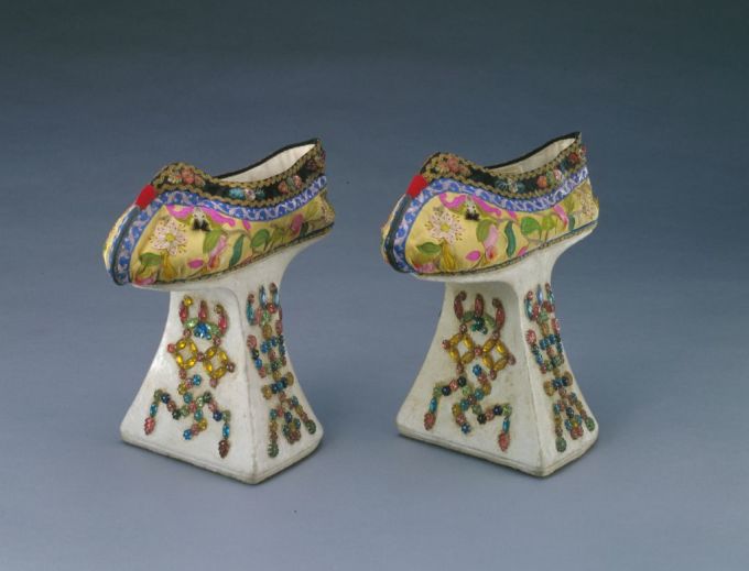 Kiểu giày có đế hình chậu hoa từng được Từ Hi Thái hậu sử dụng hiện đang được lưu giữ và trưng bày tại Bảo tàng Cố cung. Đôi giày trong ảnh cao 17 cm và dài 21,5 cm. Phần trên của giày được may từ vải lụa, có thêu hoa sen, đính đá. Ngoài ra, mũi giày còn được trang trí bằng chỉ thêu