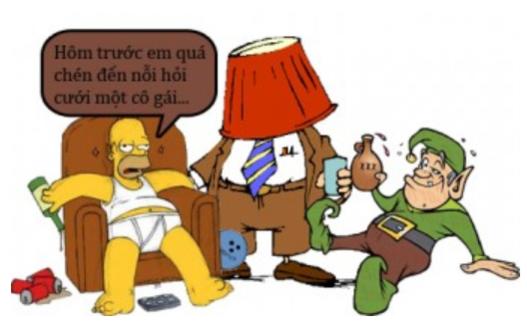 - Hôm đó em say quá nên đi nhầm vào nhà hàng xóm và bị dần cho một trận.