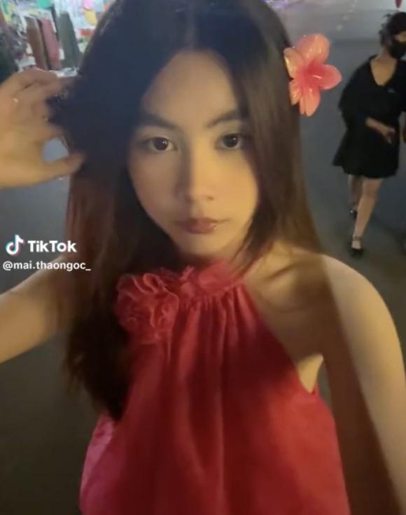Bé Hạt Dẻ đã đăng tải đoạn clip vô cùng xinh đẹp trên trang Tik Tok cá nhân. Trong video được chia sẻ, ái nữ diện trang phục màu hồng đơn giản khoe vai trần gợi cảm. Ngoài ra, tô điểm thêm là cánh hoa được gắn lên tai càng khiến Hạt Dẻ xinh xắn bội phần.