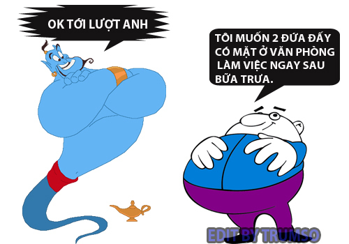 - "Ok tới lượt anh", thần đèn nói với ông quản lý.