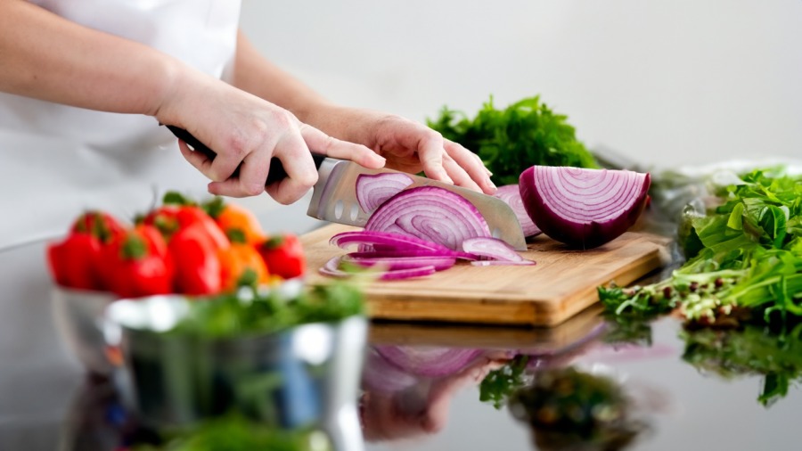 Trước khi thái hành tỏi, hãy thái lát khoai tây và chà chúng đều lên hai bề mặt dao. Cách làm này sẽ giảm hăng cay mắt.