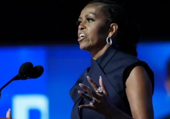 Bà Michelle Obama phát biểu tại Đại hội toàn quốc đảng Dân chủ tháng 8/2024. Ảnh: Detroit Free Press