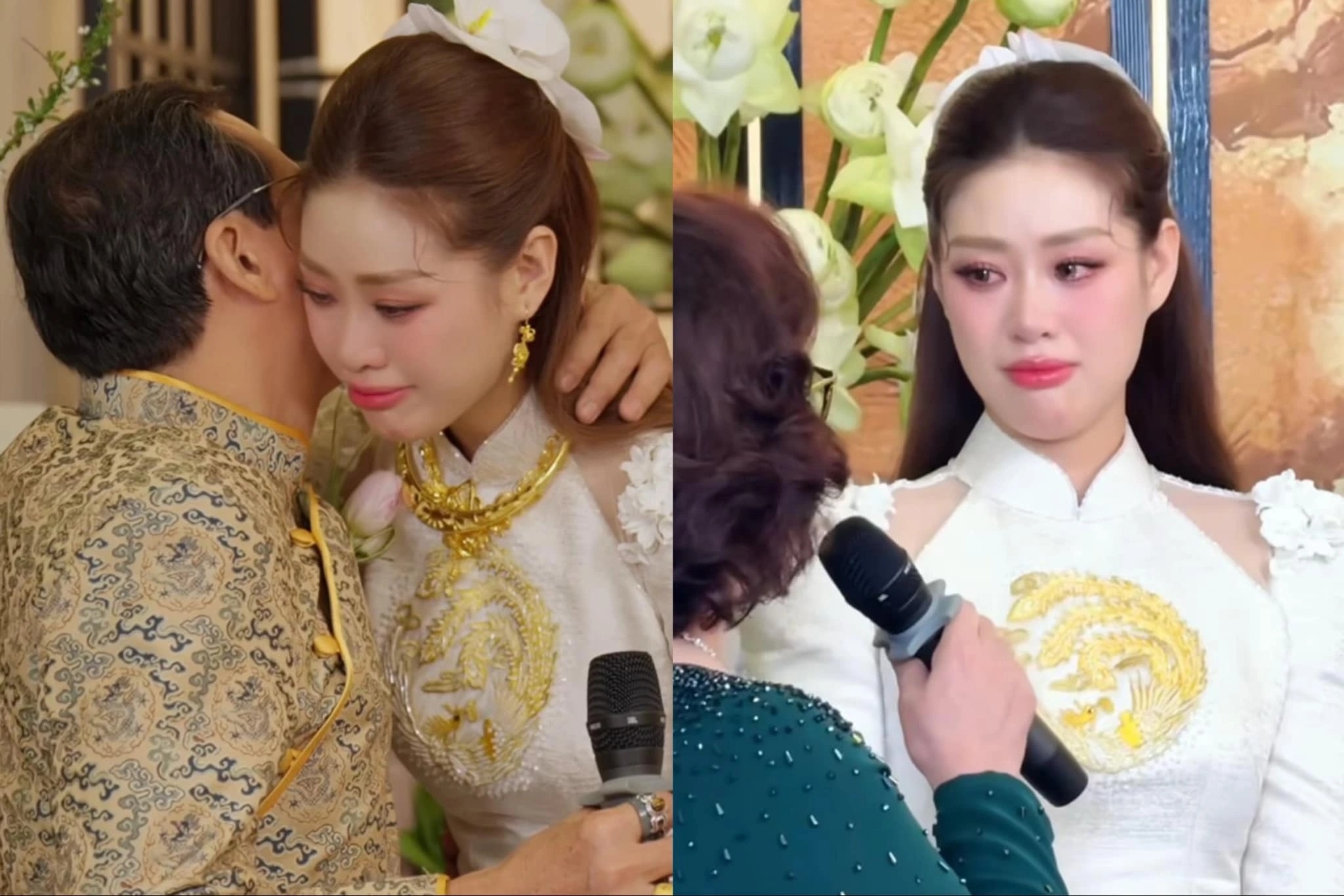 Khánh Vân bật khóc khi rời vòng tay ba mẹ về nhà chồng. Chụp màn hình