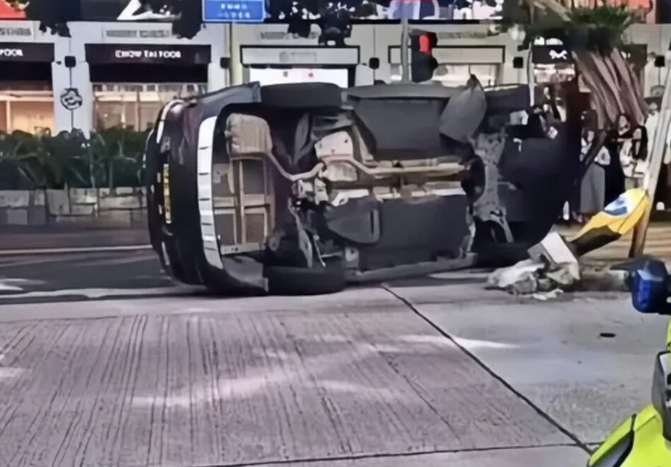 Tại ngã tư, chiếc ôtô của Giang Nhược Lâm bất ngờ mất lái và tông vào cột đèn giao thông, rồi lật ngửa. Hiện trường cho thấy chiếc xe nằm lật ngửa hoàn toàn, hư hại nặng nề.