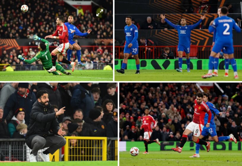 Phút 66 và 82, hàng thủ Rangers để lộ khoảng trống. Harry Maguire, Manuel Ugarte thoải mái lao vào đánh đầu nhưng bàn thắng thứ 2 vẫn không đến với đội chủ nhà.
