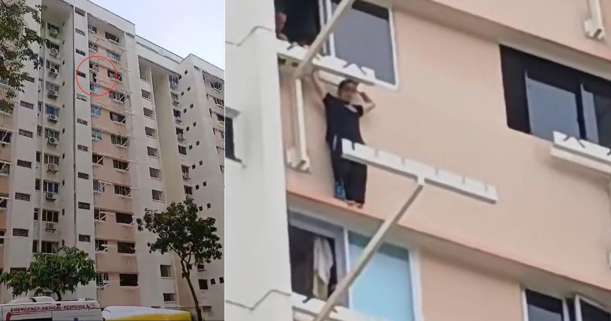 Vào ngày 13 tháng 1, một người phụ nữ được phát hiện đứng trên bệ cửa sổ bếp của một căn hộ ở tầng 10 tại khu nhà ở công cộng trên phố Tampines số 82.