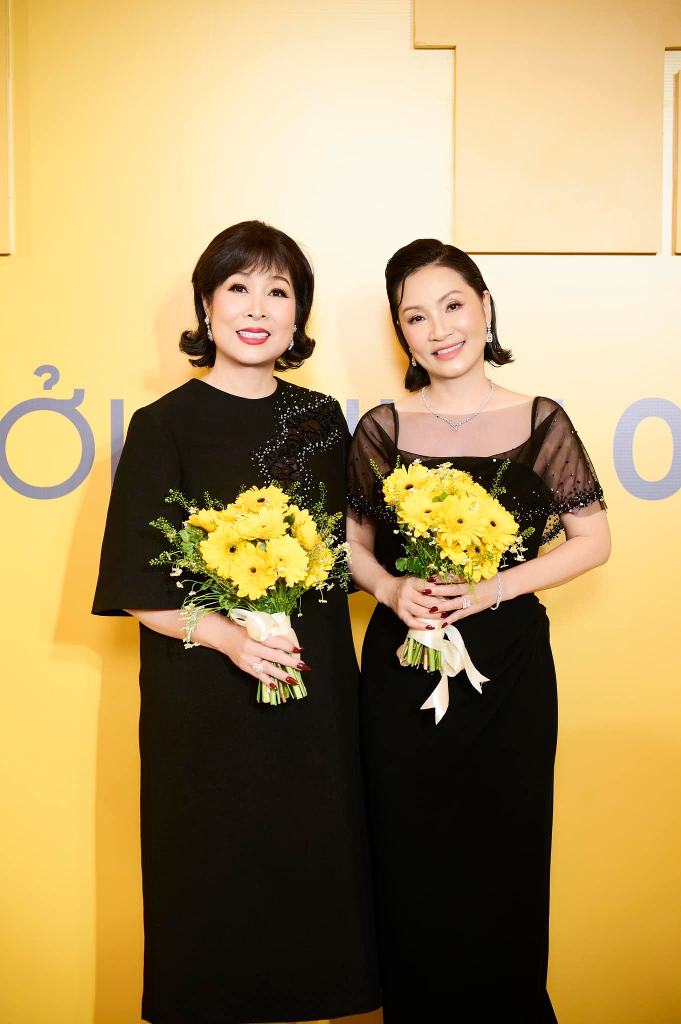 NSND Hồng Vân và Hồng Đào trong buổi ra mắt phim "Hai lúa". Ảnh: FBNV