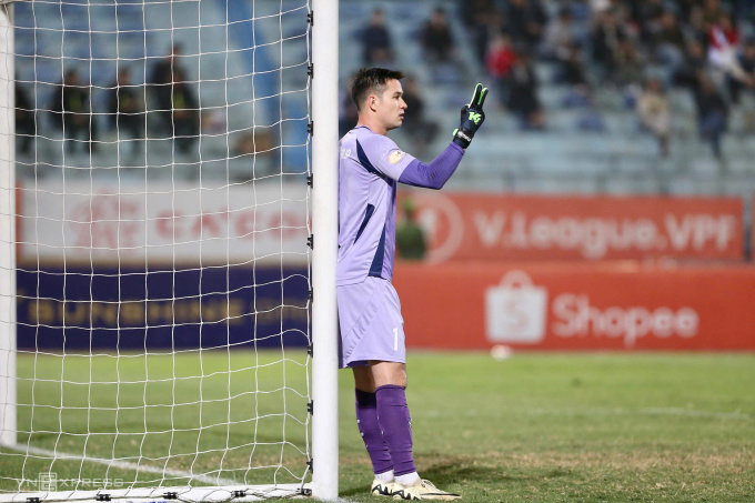 Thủ môn Nguyễn Filip trong trận Công an Hà Nội hòa Quảng Nam 4-4, ở vòng 13 V-League 2024-2025, tại sân Hàng Đẫy tối 15/2. Ảnh: Hoàng Huynh