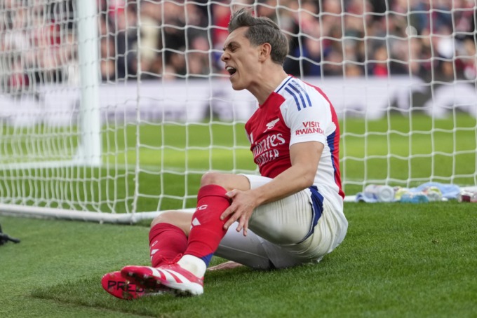 Leandro Trossard thất vọng trong trận Arsenal thua West Ham 0-1 West Ham 0-1 trên sân Emirates, thành phố London, vòng 26 Ngoại hạng Anh ngày 22/2/2025. Ảnh: AP