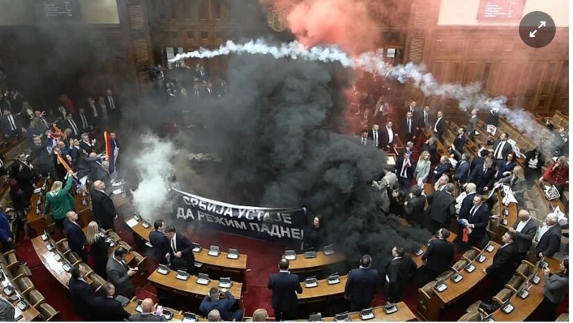 Trong ngày đầu kỳ họp mùa xuân, các nghị sĩ đối lập Serbia đốt pháo sáng và ném lựu đạn khói trong tòa nhà Quốc hội nhằm thể hiện sự ủng hộ đối với phong trào biểu tình trong nước.