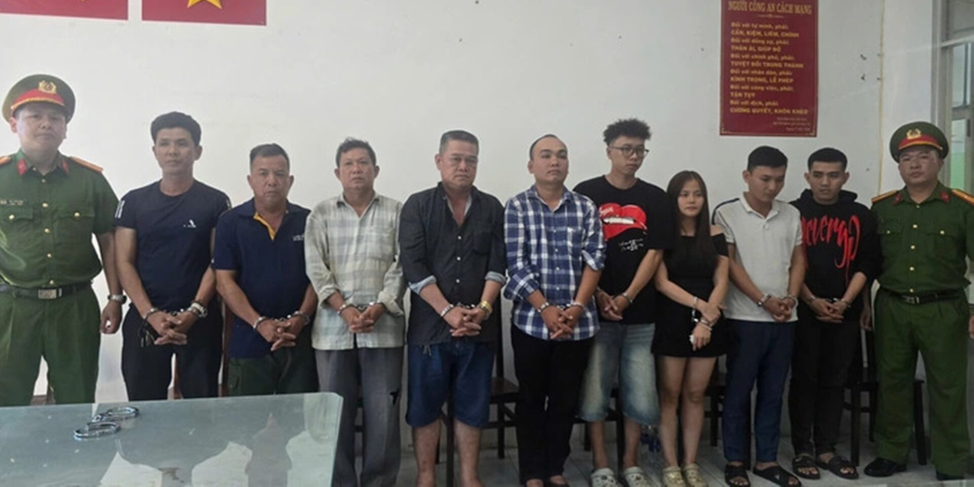 Các nghi can gồm Hồ Ngọc Tuấn, 25 tuổi; Nguyễn Đăng Khoa, 25 tuổi; Nguyễn Văn Thẩm, 31 tuổi; Nguyễn Quốc Cường, 44 tuổi; Phạm Hùng Cường, 48 tuổi và Nguyễn Hoàng Sơn, 53 tuổi (tất cả cùng quê tỉnh Long An); Nguyễn Văn Quyết cùng vợ Thị Thanh Xuân, 30 tuổi, ở quận 12 và Lê Văn Nghĩa, 44 tuổi, ở huyện Bình Chánh.