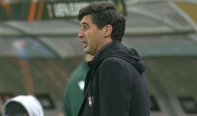 HLV Paulo Fonseca khóc trong trận Lyon thắng FCSB 3-1 trên sân Nationala, thành phố Bucharest, Romania, lượt đi vòng 1/8 Europa League tối 6/3/2025. Ảnh chụp màn hình