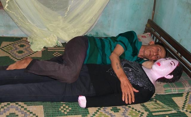 Suốt 19 năm qua, đêm đêm ông Vân vẫn ôm bức tượng chứa thi hài của vợ để ngủ