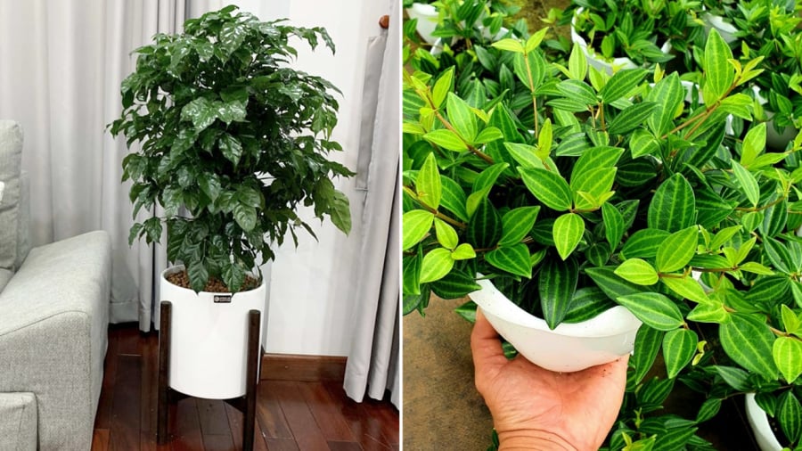 Cây kim tiền (bên trái) và cây ngũ gia bì là những loại cây cảnh không chỉ có tác dụng trang khí mà còn mang ý nghĩa phong thủy tốt, có thể đặt ở phòng khách.