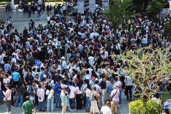 Thời điểm đó, hàng ngàn người đổ về Công viên Benjasiri từ các trung tâm mua sắm, tòa nhà cao tầng và chung cư xung quanh dọc theo đường Sukhumvit đông đúc của Bangkok. Nhiều người dùng điện thoại để cố gắng liên lạc với người thân trong khi những người khác tìm khu đất trống để bảo vệ an toàn.
