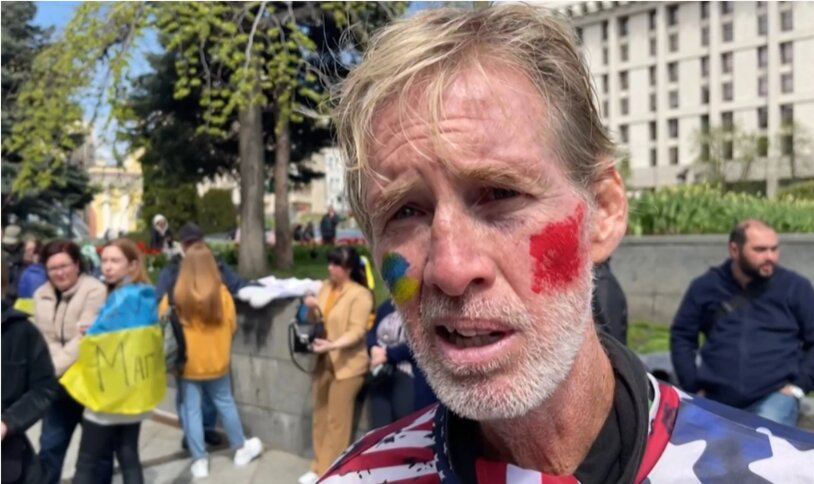 Ryan Routh trả lời phỏng vấn tại cuộc tuần hành kêu gọi ủng hộ Ukraine ở Kiev tháng 4/2022. Ảnh: AFP