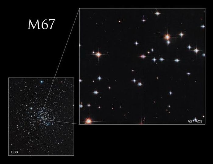 Cụm sao M67, còn gọi là cụm sao King Cobra (Hổ Mang Chúa), chứa các ngôi sao gần như giống hệt nhau về tính chất nhưng khác nhau về khối lượng.