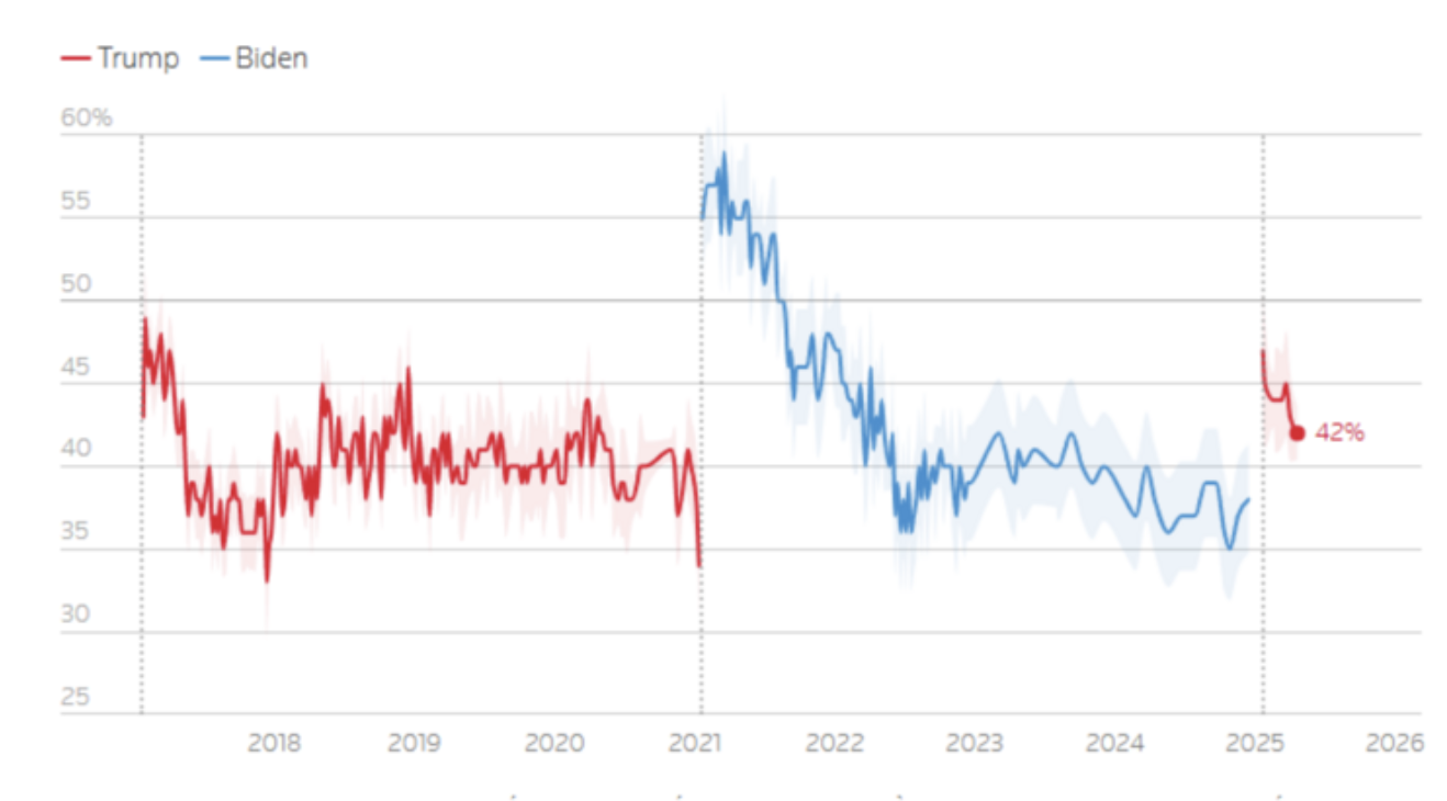 Chỉ 42% người dân Mỹ bày tỏ sự ủng hộ với Tổng thống Trump, trong khi phần lớn lo ngại về xu hướng mở rộng quyền lực của ông.