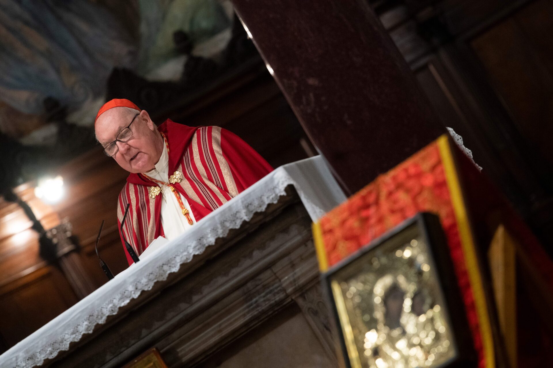 Khi thông báo sự ra đi của Đức Giáo Hoàng, Hồng Y Farrell mặc áo choàng trắng và khoác một miếng vải đỏ trên cổ (gọi là dây “stola”), đồng thời đưa ra lời cầu nguyện đầu tiên, trong lúc thi thể của vị giáo hoàng quá cố được đặt vào quan tài bằng gỗ và kẽm, theo sách nghi thức tế lễ của Vatican, được cố giáo hoàng cập nhật hồi năm ngoái.