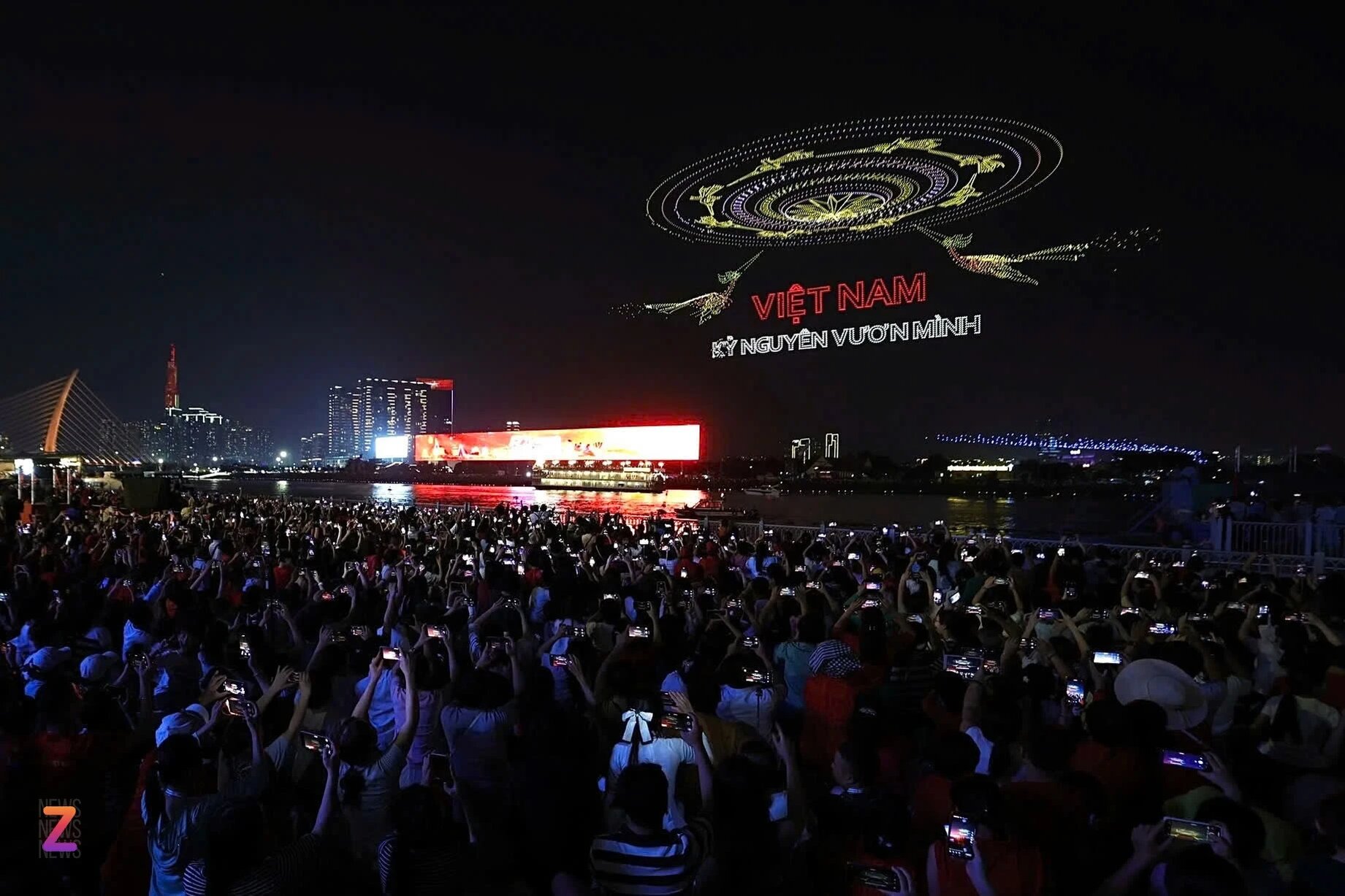 Tối 30/4, màn trình diễn 10,500 thiết bị drone được tổ chức trên khu vực công viên bờ sông Sài Gòn, sớm hơn so với lịch dự kiến là ngày 1/5. Tuy nhiên, màn trình diễn chỉ kéo dài khoảng 5 phút với một số hình ảnh như xe tăng húc đổ cổng Dinh Độc Lập, hình ảnh Bác Hồ với hoa sen, hình ảnh trống đồng, chim hạc hay dòng chữ 50 năm Giải phóng miền Nam, thống nhất đất nước, song một số chi tiết cũng không được thể hiện ra rõ ràng.
