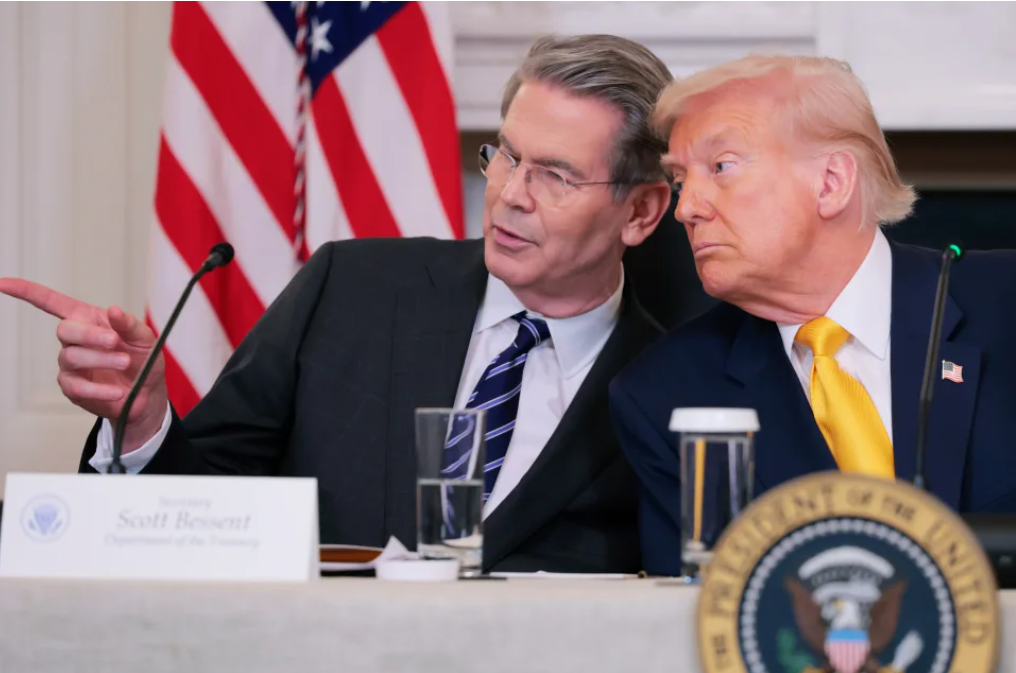 Bộ trưởng Tài chính Scott Bessent (trái) và Tổng thống Donald Trump tại Nhà Trắng vào ngày 7/3/2025. Ảnh: Getty Images