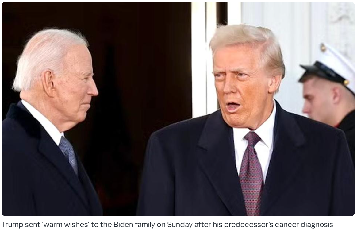 Biden đã bỏ cuộc trong trận tái đấu năm 2024 với Trump sau cuộc tranh luận thảm hại vào cuối tháng 6 năm ngoái. Biden có vẻ yếu ớt và gặp khó khăn trong việc nói hết câu. Trump thường xuyên chế giễu người tiền nhiệm của mình là “Joe buồn ngủ” và ông thường đổ lỗi cho chính quyền Biden về bất kỳ thất bại nào trong thời gian đầu nhiệm kỳ thứ hai của mình.
