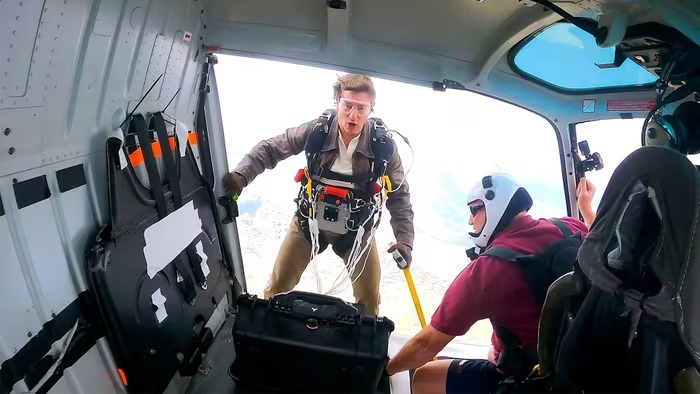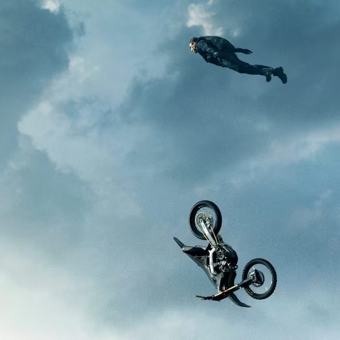 Không chỉ thách thức thể chất, “Nhiệm vụ: Bất khả thi - Nghiệp báo cuối cùng” còn tiếp tục duy trì truyền thống “không đóng thế” của Tom Cruise. Ở tuổi 62, nam diễn viên tiếp tục khiến người xem kinh ngạc với cảnh nhảy khỏi máy bay hai tầng đang bay - được quay thật với camera gắn trực tiếp trên người.