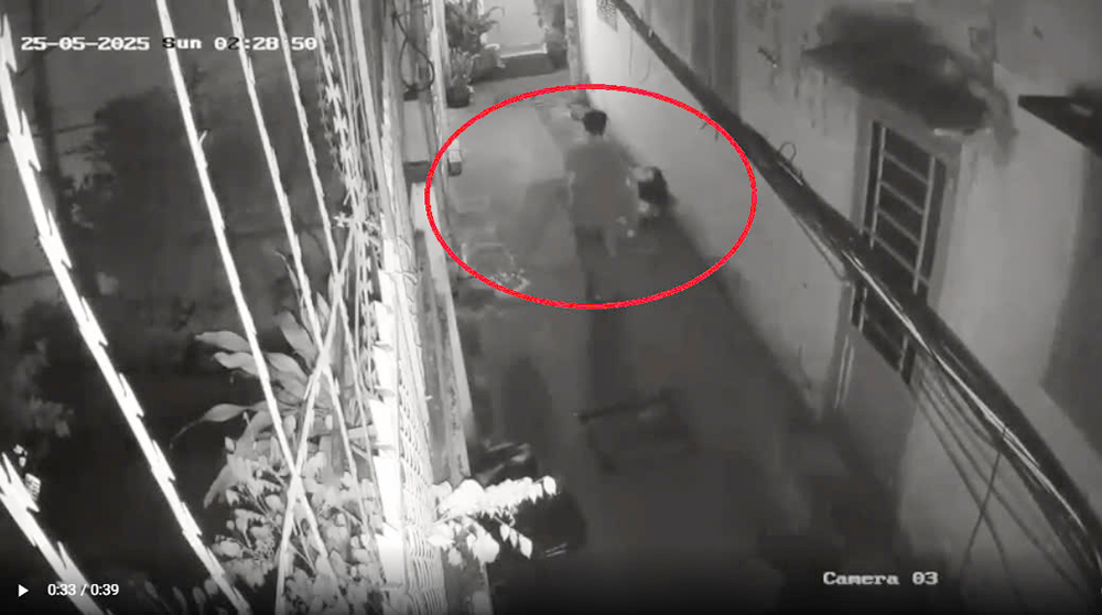Camera an ninh ghi nhận cảnh Nguyễn Ngọc C. mang thi thể mẹ ra vứt ở đường lúc rạng sáng. Ảnh: Người dân cung cấp.